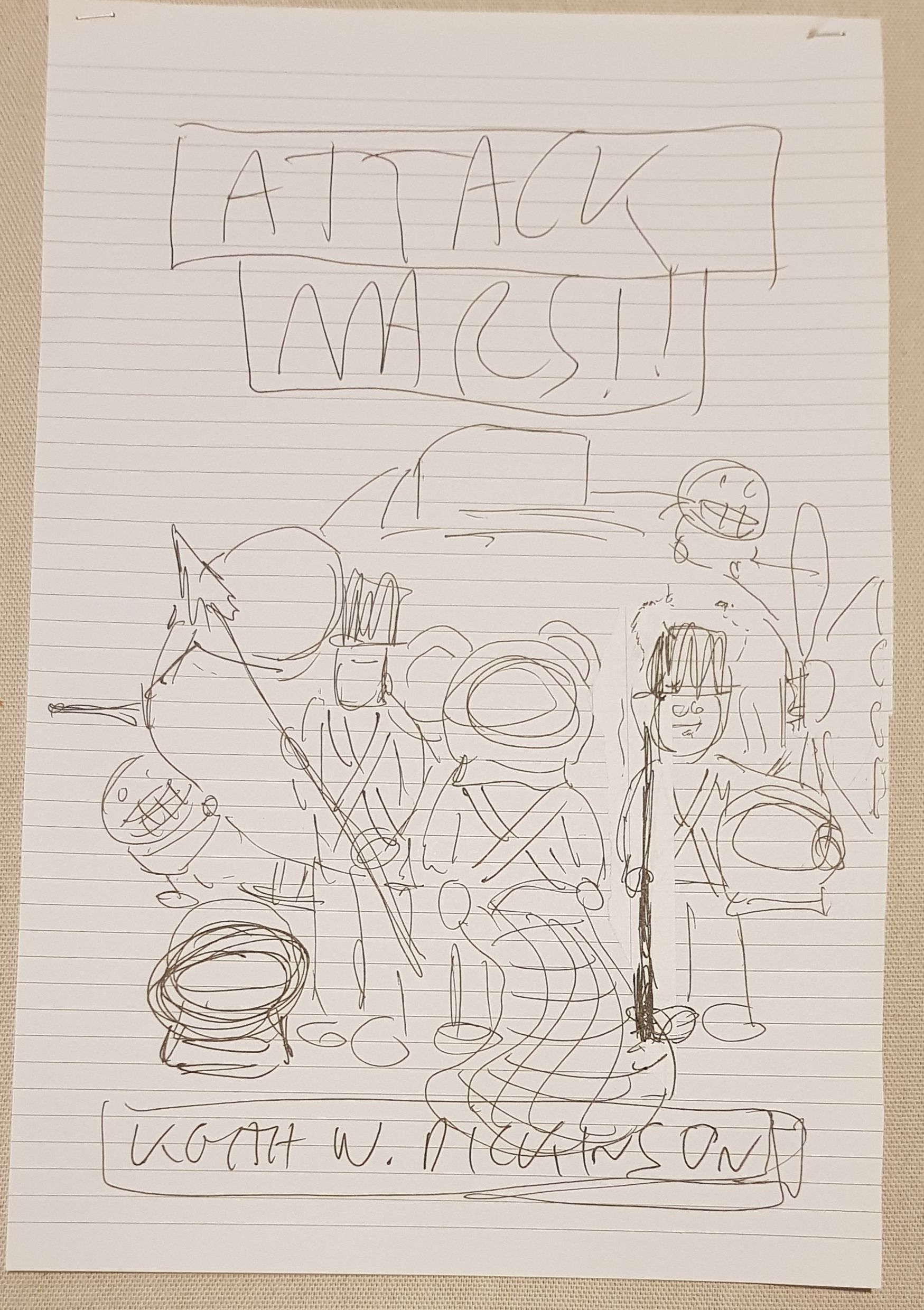 Speaking of cover design, I’m in the process of commissioning an illustration for the cover of Attack Mars!! I’ve put together a brief, got a bunch of reference material together, and I’ve even done a rough sketch of what I’m after to get started.